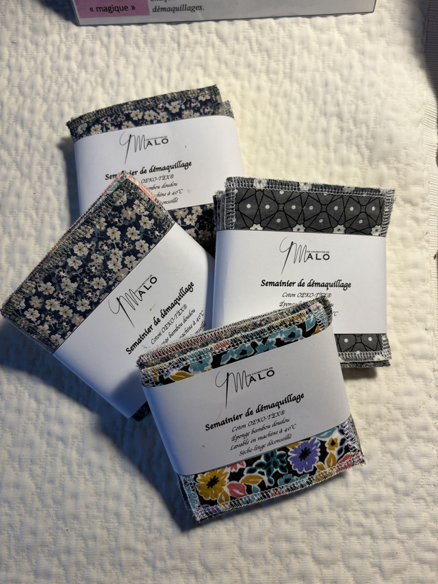 Lot de 6 lingettes démaquillantes en coton OEKO-TEX et éponge bambou doudou; Ultra douce pour la peau ces lingettes sont la solution idéale pout transformer votre routine beauté. Videz vos poubelles des cotons démaquillants jetables en adoptant ces lingettes écologiques et économiques (1 par jour pour une semaine de tranquillité) et hop en machine avec les services de toilette. Idéales pour un démaquillage écologique économique et doux pour la peau. Vous ne pourrez plus vous en passer.
